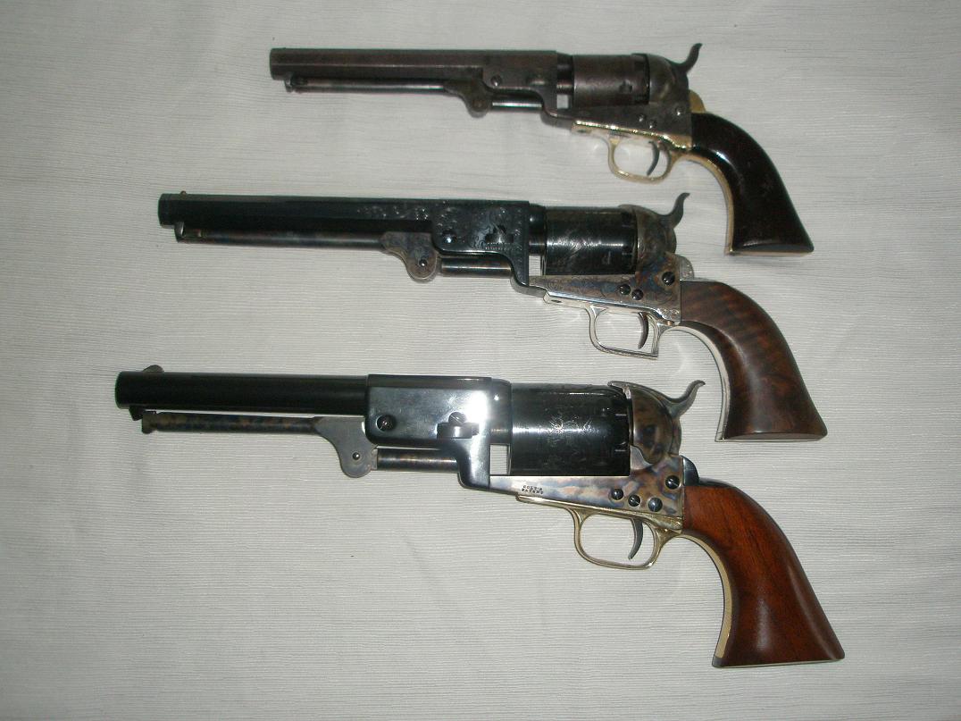 Pongo una foto con sus hermanos de marca, el Navy 1851 y el Dragoon 1848 para que se vea la diferencia de tamaños, y el por qué de lo de Pocket.