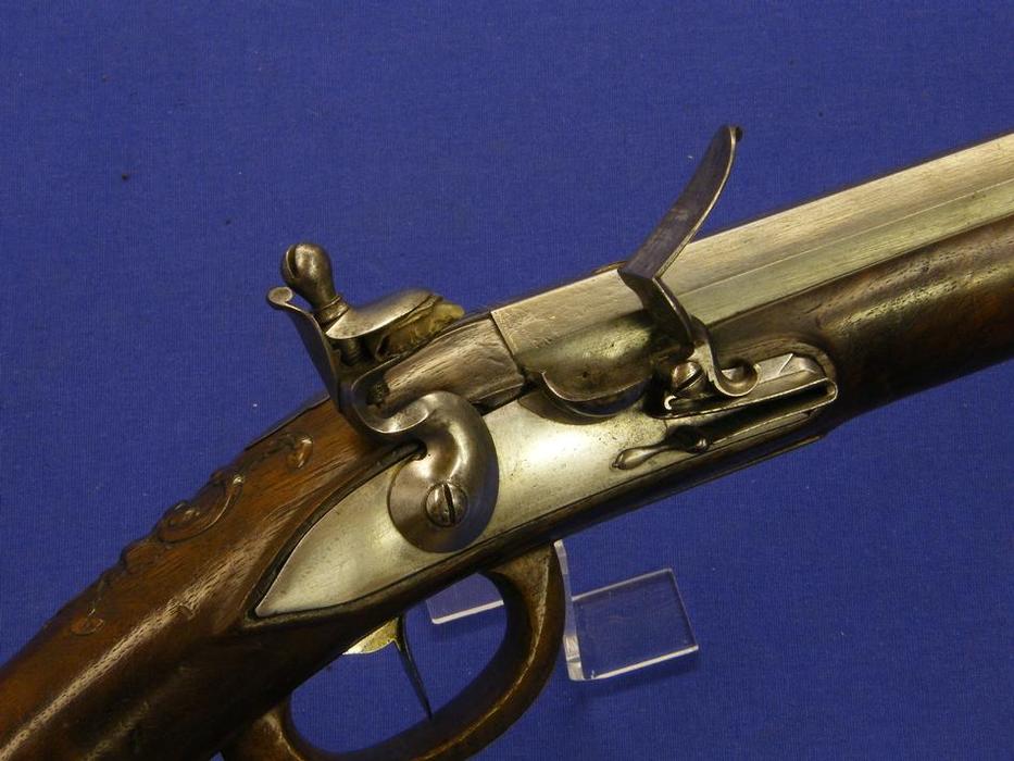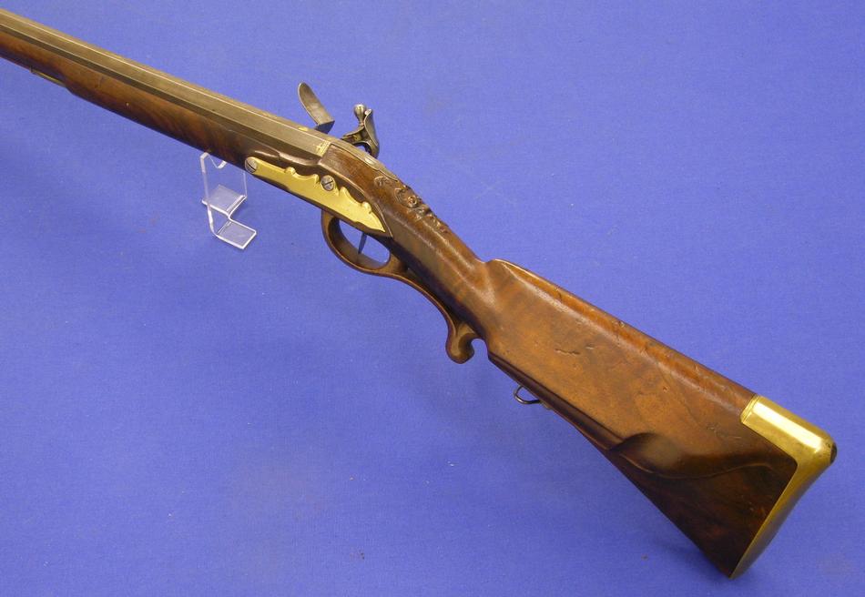 Un buen fusil aleman en chispa, del siglo XVIII , firmado por LINDENSCHMITT en Maguncia (Mainz) anima lisa de calibre 15 mm, longitud 120 cm(?) en perfecto estado. Precio 2,850 euro.