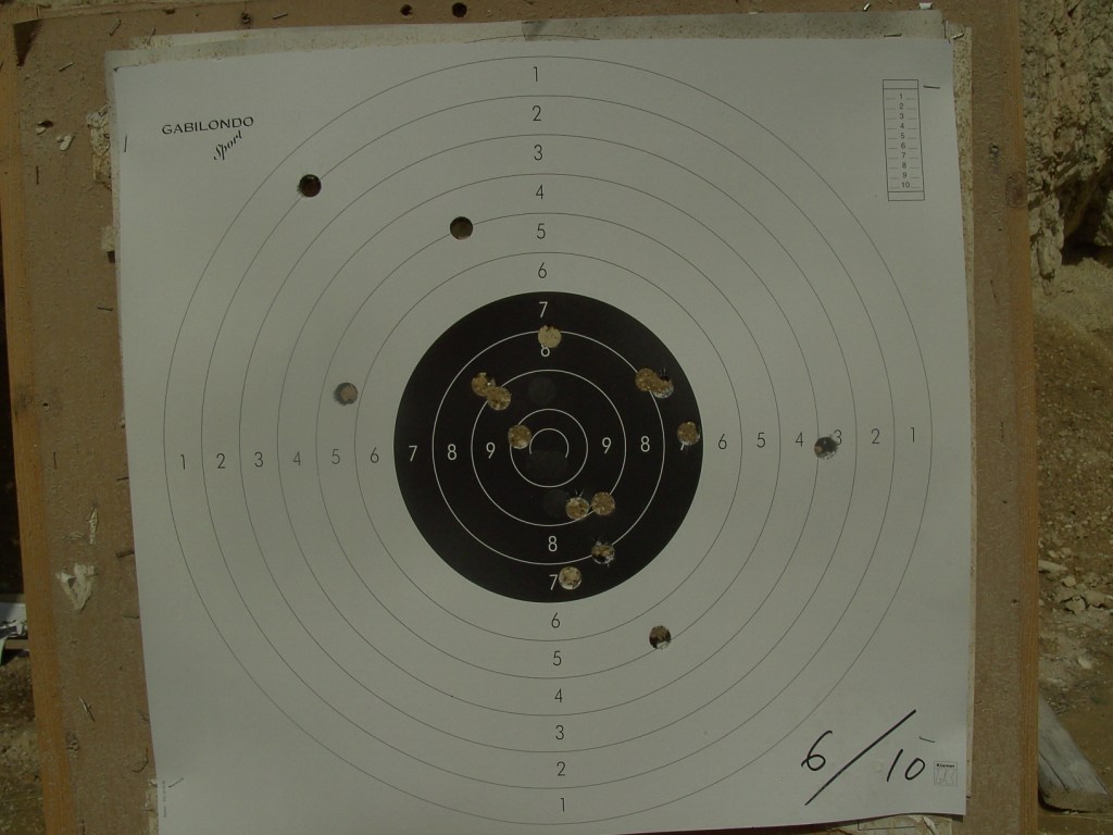 No sale en la foto un 5 a las 5 que es el tiro de "limpieza" que tengo por costumbre en entrenamientos tirarlo al blanco y descartarlo después