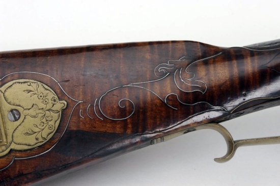 Esta rifles muy fina Pennsylvania cae en la categoría de los rifles que Joe Kindig atribuida a Wolfgang Haga y han sido reconocidos como tales desde la redacción de su tumba monumental, "Reflexiones sobre el Rifle de Kentucky en su Edad de Oro" en 1960.