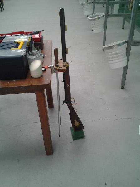 El arma mi Wesson-Foster con champiñon, bala minie de 260grains adquiridas a un tirador aleman, no utilizo semola, ni taco, la base de la bala asienta directamente sobre la polvora,esta que utilice hoy es Suiza nº1 ya que de la nº2, estoy escaso, pero la agrupacion es muy decente, cantidad 18grains.