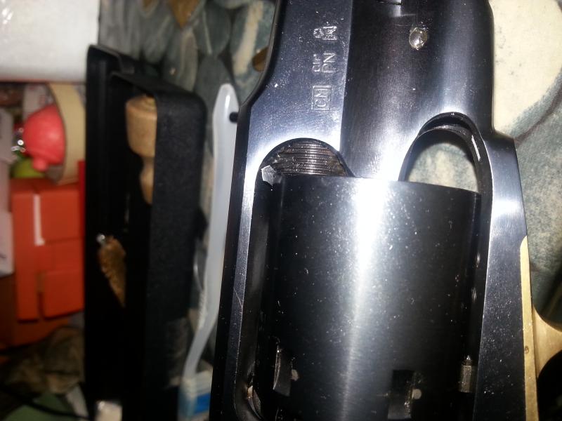 Hola compañeros, como sabemos con el tiempo los gases que salen entre la unión del tambor y cañón dejan un corte en el eje y en el armazón en los revólveres de armazón cerrado.