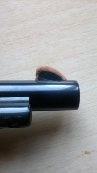 Yo lo tengo recrecido con nural 21 y después teñido de color plata (el revólver es inox), cuando lo compré venía demasiado limado y la otra solución era poner uno nuevo y empezar de cero.