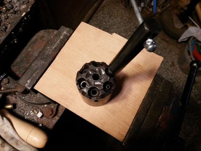 Había realizado unas tomas para presentar en sociedad esta nueva adquisición de tan preciado acero pero realizando su desmontaje y limpieza se me ha agriado algo porque...ahora tengo que buscar una llave que me encaje con mayor precisión porque solo pude aflojar tres chimeneas de las seis y no sigo porque veo que las restantes me las cargo. Encima una chimenea es ciega, así que no se si me ha tocado el gordo y me va a tocar hacer la ñapa o directamente cambio las seis por otras de Uberti.