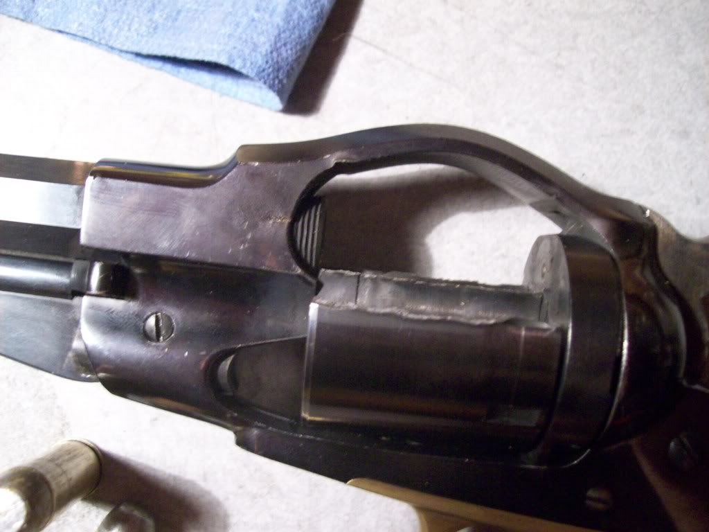 En la página 3 el dueño de ese revólver admite que quizá se debiese a una doble carga o a una sobrecarga de pólvora que se le pasase por alto. Recargando con nitro éstas cosas pasan, y también pasan si alimentas con un cartucho equivocado (hay el ejemplo de un Cattleman reventado por disparar un 44-40 en lugar de un 45 Colt en éste mismo foro).