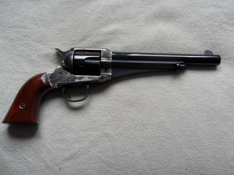 6) Remington 1858 conversión .45 LC (más barato, cola de milano, preciso con la carga adecuada y bola, demasiado ajustado por lo que se ensucia más, hace falta mas limpieza entre tiro y tiro).