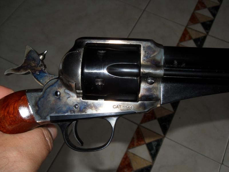 “el 1858 del 45 Colt tiene como fuerte su poderosa estética, y como desventaja que su conversión no es del todo de época. Aparte, está sobredimensionado. Creo recordar tiene marcha atrás, es decir, se le puede poner cilindro avancarga, hablo de memoria pués el unico que manejé fue el recién comprado de un amigo.