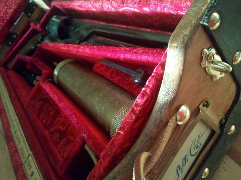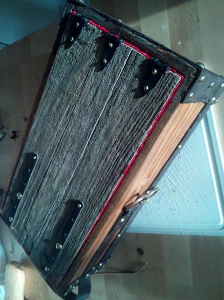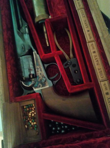 Saludos. Os enseño un estuche-cofre que me he hecho para mis colt's. Quería algo con aspecto viejuno que se hubiera podido llevar como alforja o en el pomo. He utilizado una caja de pino con bastantes años y uso de 370x200x100. Está forrada de piel engrasada en la base y laterales, donde imaginé que rozaría con el pelo del caballo. Tiene dos pisos interiores, uno superior para el Navy con sus accesorios y otro debajo para el pocket con las cartucheras, cinturon, cuchillo y demás. (Este aún lo estoy terminando). El cierre es sin candado, mediante dos tiras de cuero trabadas con cordón de cuero.