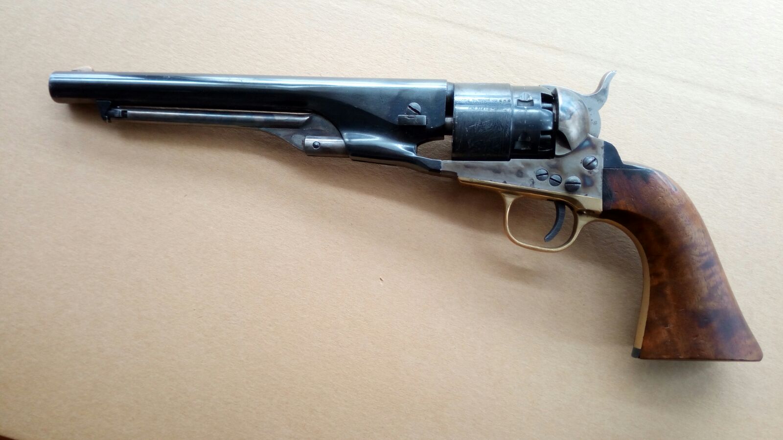 Hola compañero, la fabrica ASM, tuvo en esos años derechos de Colt para reflejar dicha inscripcion en sus replicas de revolveres Colt 1860 Army, aqui te dejo fotos del mio que es del mismo año.