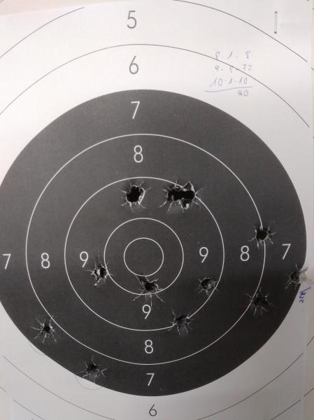 Esta mañana he vuelto con "más calma" y muy satisfecho me he vuelto. Los primeros tiros dispersos por las prisas pero luego, tras bajar pulsaciones y calmarme, una maravilla, cerrando con un grupete de 5 tiros a las 5 en el 9/10 que me ha sabido a teta