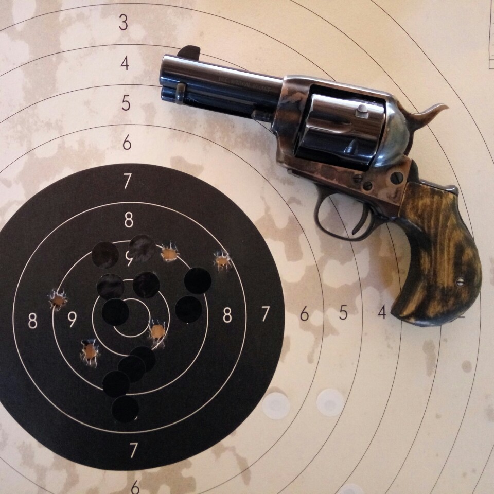 Mejor que el Cattleman, pende del Cattleman..., tengo uno con cañonde 3,5" que agrupa mejor que cualquier otro revolver de la configuración que sea que haya caído en mis manos, suelo tirar con el un tambor de vez en cuando solo para alegrarme el día, os pongo algunos blancos, ni yo me explico porque agrupa mejor que otros de 5,5" que tengo