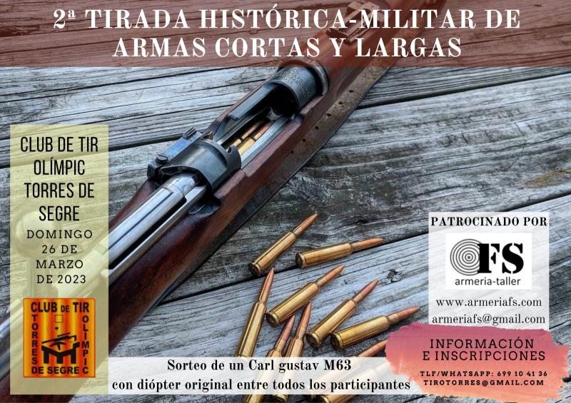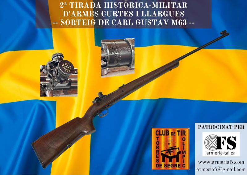 Devido al exito de asistencia y ambiente de la tirada del año pasado nos hemos animado y programado una nueva tirada para este año. Sera el dia 26 de marzo, en domingo. La tirada es de cartucheria matalica tanto en largas como en cortas, y tanto si es con polvora negra o nitro, y con originales o replicas, La unica condicion es que el modelo haya estado de servicio en algun ejercito en los años anteriores a 1970. Entre los participantes de la tirada se sorteara como regalo principal un fusil Carl Gustaf equipado con diopter de la epoca. Os dejo un cartel de la tirada y otro del fusil .