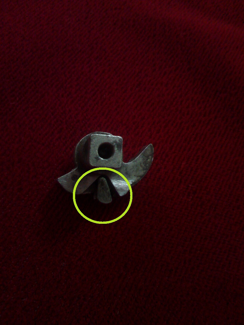 Esa pieza sirve para que el fiador no se quede enganchado en el diente de seguridad cuando se produce el disparo, de manera que al pasar el fiador por el diente, lo cubre.
