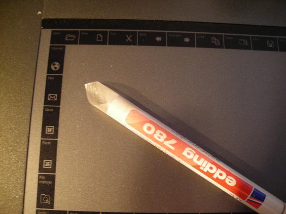 Como el papel se pega al instante no espero nada y lo desplazo por el rotulador hasta dejarlo como veis en la foto.