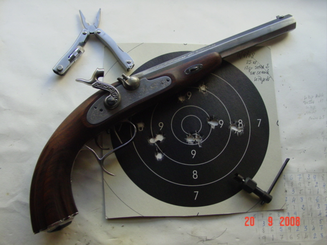 He adquirido otra pistola La Page Napoleon de ArmiSport. Ya comenté a alguna ocasión que me encanta la estética de ese arma, que posee la belleza que los "allonsanfant" sabían dar a sus realizaciones. Esta cuenta con un cañon de precision, y por su inscripcion en el mismo deduzco que ha pasado por una firma alemana (algo tipo Hege).Tiene dos estrias mas que la normal, y los valles son algo menos pronunciados. No me atrevo a decir que es microestriada, pero casi.