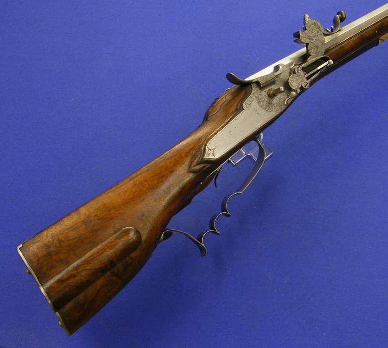Este rifle es un tipico trabajo de Johann Peter Bosler en Darmstadt.