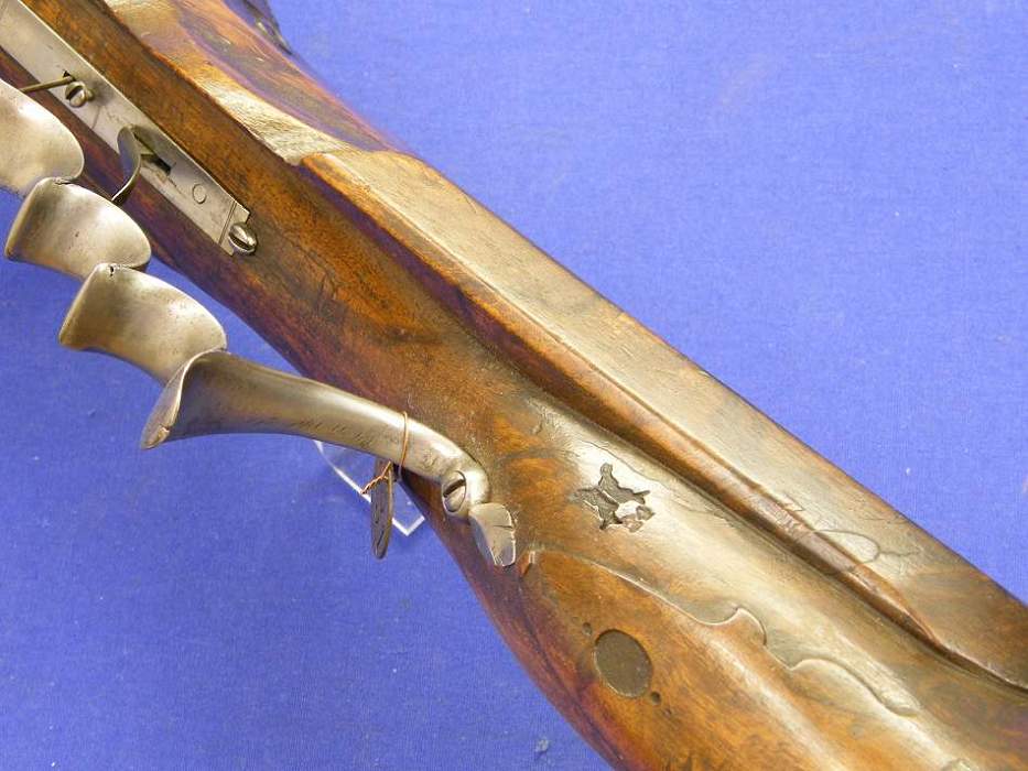 Este es un rifle de muralla, (wallgun) del siglo XVIII, de la ciudad de Leeuwarden en Paises Bajos. Tiene un calibre de 26 mm.
