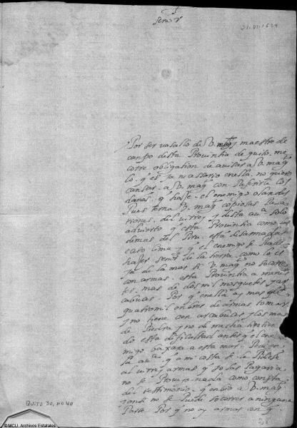 Por ser vasallo de V. Magestad maestre de campo desta provincia de Quito me corre obligación de avisar a V Magestad lo que es ya necessario en ella.