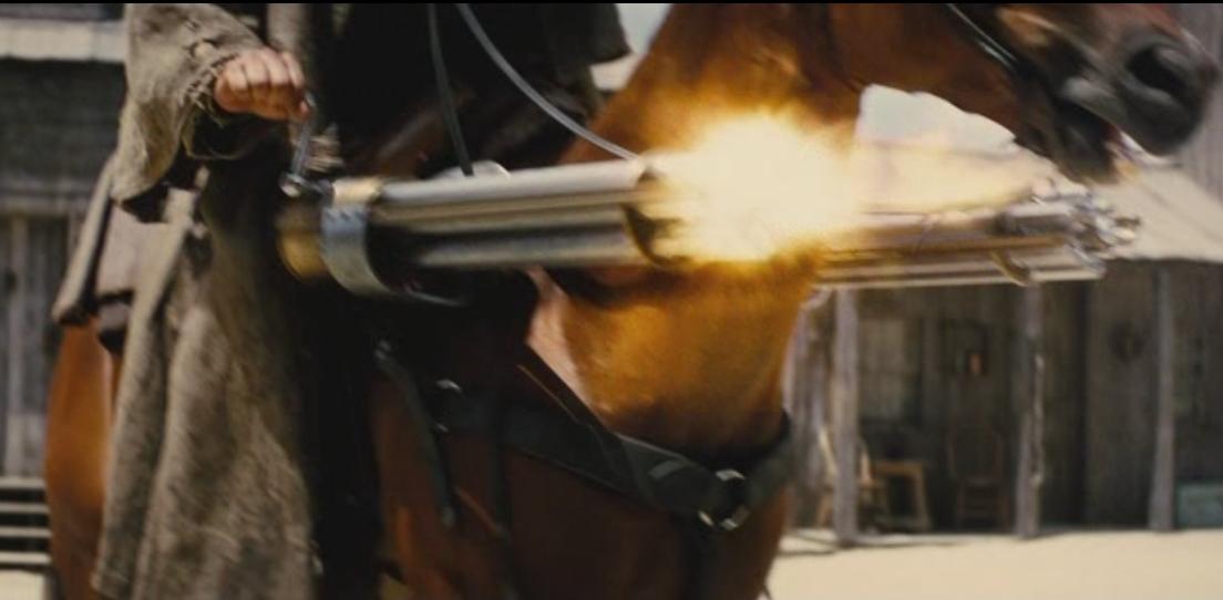 Y para los amantes de los caballos les recomiendo el último grito en complementos y accesorios tipo Western para sus corceles.....un par de buenas Gatling.