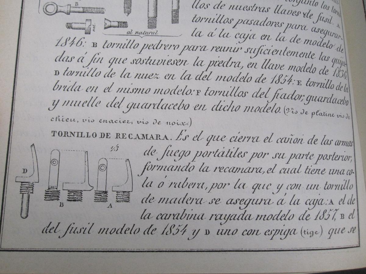 Ahora que tienes la recámara desmontada, seria interesante, que midieses su capacidad hasta la punta delantera del "tornillo", pues ese seria su carga de pólvora. Seria como las Minie, sin tacos ni calepino.