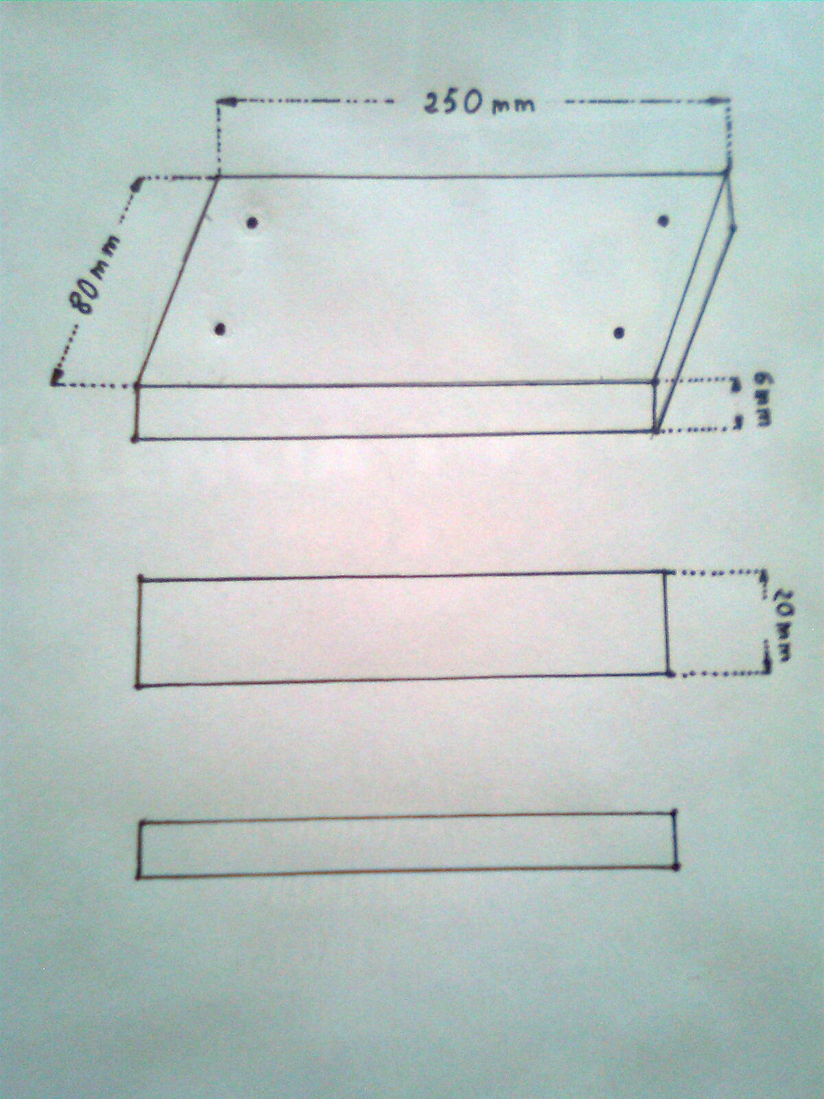 Medidas en milímetros de las dos planchas de metal, 250 x 80 x 6.
