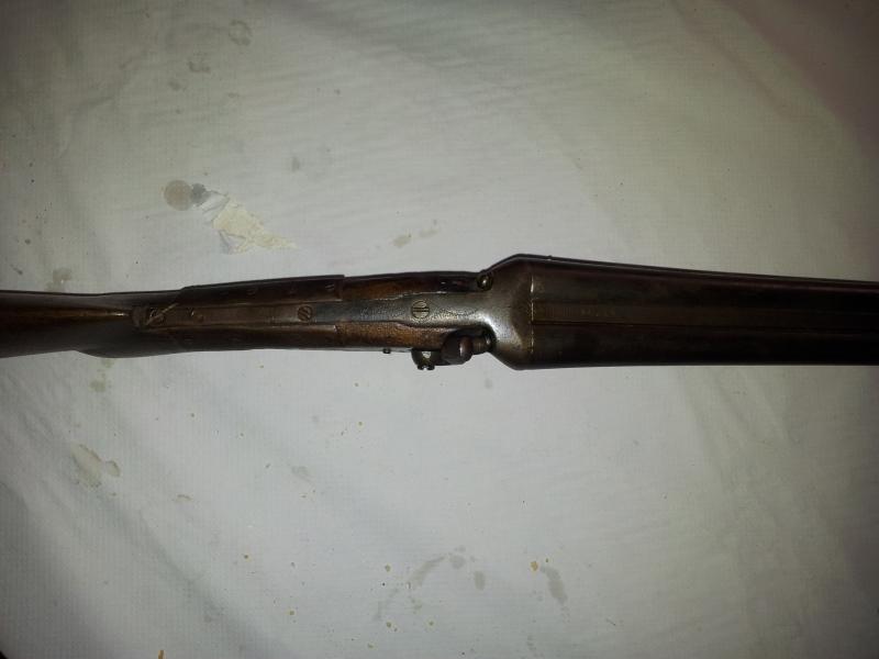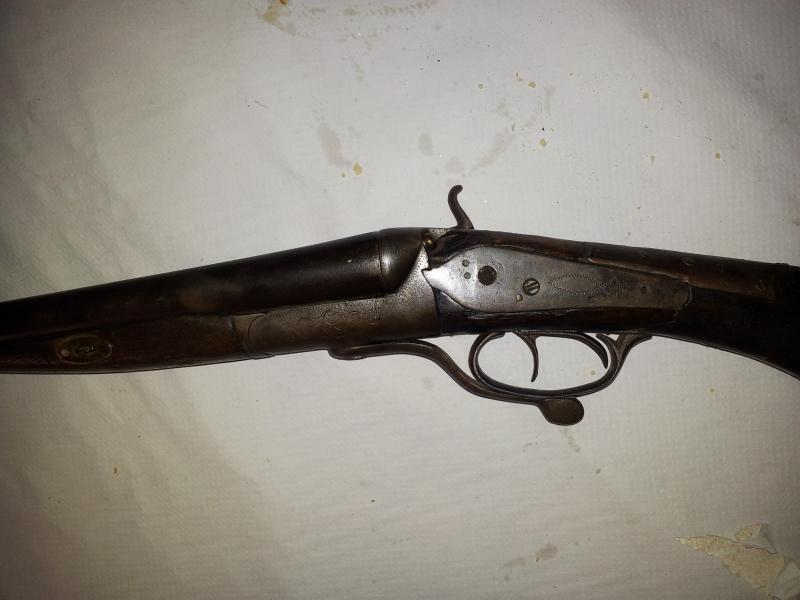 Por el sistema de cierre que presenta pienso que debe ser un arma de POLVORA NEGRA o sea que ni se te ocurra probar con cartuchos de polvora SIN HUMO, o sea de los modernos, a no ser que quieras aparecer en urgencias y/o en videos de primera o en un gag de JACKASS.