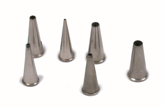 Yo empleo embudos de otoscopios, son muy baratos y fáciles de encontrar, (en farmacias). Además son muy polivalentes, ya que te sirven tanto para calibre 36, como 44, e incluso el 31.