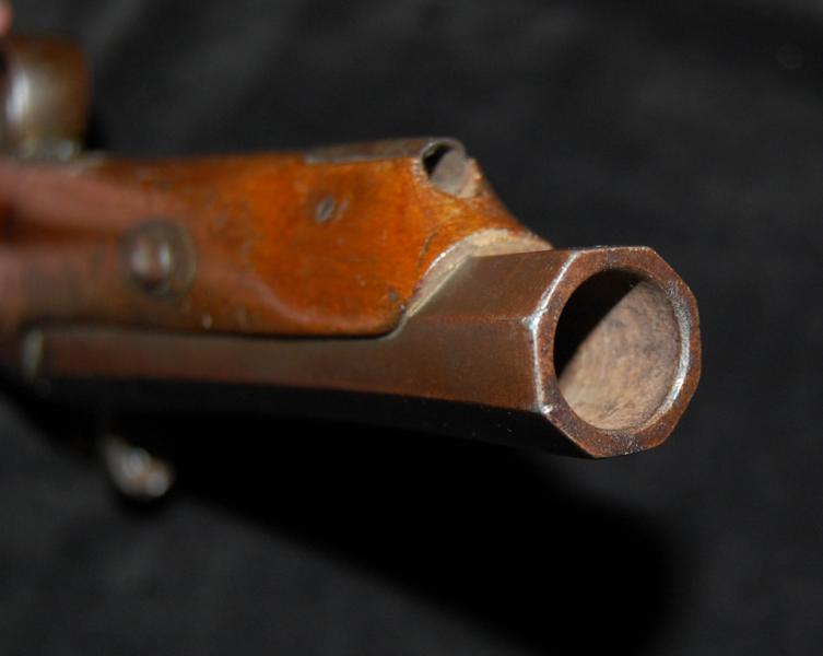 A SPANISH PERCUSSION PISTOL SIGNED JOSE BEISTEGUI EN EIBAR, DATED 1853 with octagonal swamped barrel signed in silver and inlaid with a silver line at the breech, border and scroll-engraved back-action lock, walnut three-quarter stock, chequered butt, engraved steel mounts and steel ramrod (the steel parts pitted throughout, the fore-end cracked and repaired, cleaned); and A SPANISH PERCUSSION PISTOL EIBAR, MID-19TH CENTURY, of rudimentary construction (worn, extensively cleaned) the first: 30.5cm; 12in (2) £200-300