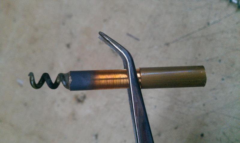 Precisamente ayer, limpiando el Alexander Henry se me quedó dentro un calepino de limpieza, y al no tener sacatrapos, se me ocurrió coger un cable de acero (no alambre) de 3 mm de sección y deshilacharle uno de los extremos. También funciona de maravilla, y además lo enrollas y lo guardas en la caja de bártulos