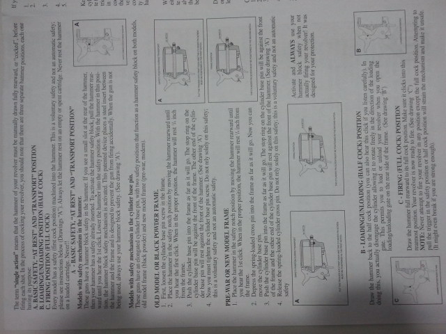 en los viejos tiempos se decia que el modo mas seguro de portar un revolver SA era cargando solo cindo recamaras y dejando el martillo en posicion de seguridad descansando en la sexta.