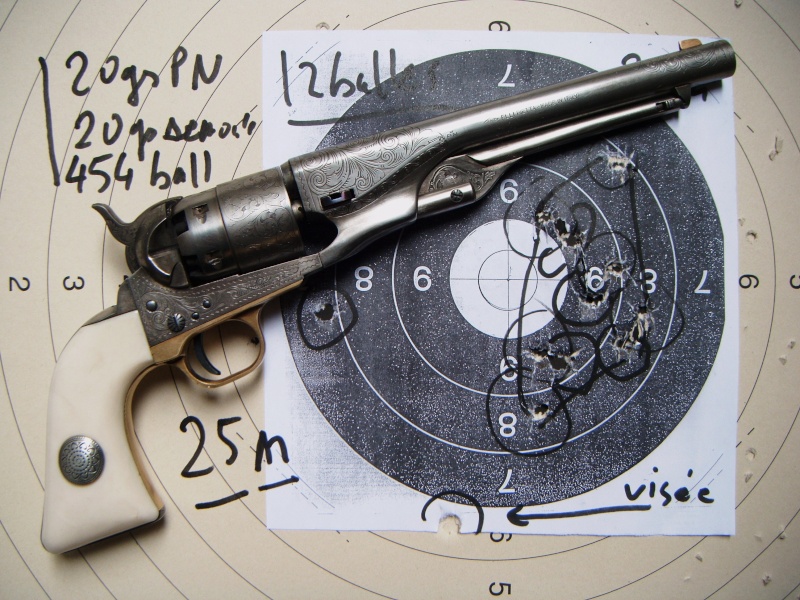 Las agrupaciones que he conseguido con los Colt, no las he hecho con los Remington. El Colt Army está mucho mejor equilibrado que el Remington, así como también con un diseño de empuñadura que facilita su empuñe. El Colt, no es tan cabezón.