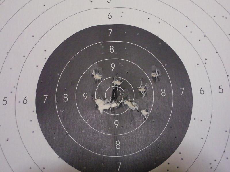 Incluso el original, con el obvio desgaste, mete los tiros uno dentro del otro. El impacto que se ha salido ligeramente de la increíble agrupación, posiblemente sea debido a un error del tirador.