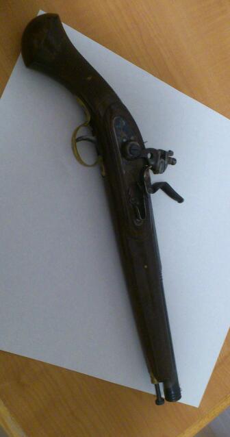 Yo tengo una igual a la que muestra el compañero en su primer mensaje y al igual que el no tengo información alguna. El arma tiene cañón con microestrias y me gustaría saber si se trata de un arma para tiro o más bien de las que se enfocaron la decoración.
