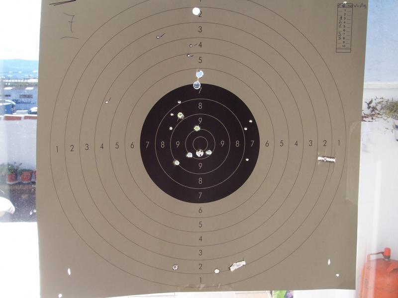 la maxi bala solo se probo con 16 grains 10 de semola mas o menos (eran tubos de una polvorera) y tenien dolo en el centro con las balas largas, para hacer que entrara en el centro tuve que apuntar sobre el 4 o 3 mas o menos.