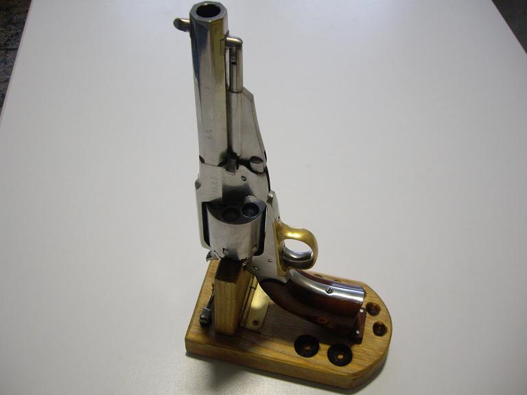Mi revòlver es un Remington 1858 de Uberti.Luego està el tema del punto de mira,yo limè hasta conseguir que los tiros vayan donde apuntas.