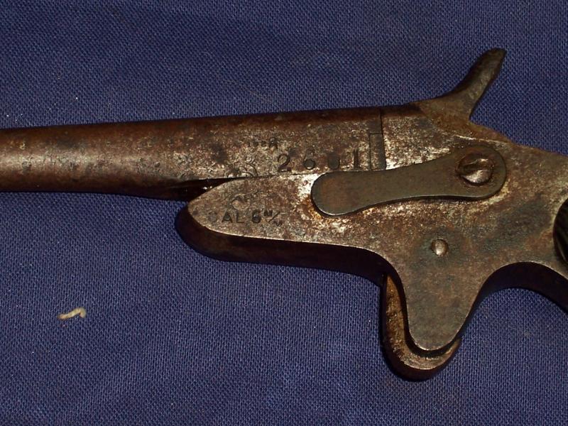 A mí me parece una pistolita monotiro del calibre 6 mm Flobert. Compañeros más expertos podrán decir más cosas a partir de los punzones...