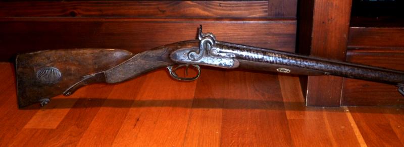 El rolling block es chulo, y muy bien equilibrado. La paralela sólo tiene un pequeño problema en un fleje de uno de los perrillos ( no se monta del todo ) y la escopeta es una maravilla. No consigo encontrar al tal "Pedro José" Sarasqueta de 1838 y el grabado parece de propiedad, no "hecho por". El punzón de arriba es como un arco con flecha y dos pequeñas rayas, tampoco lo encuentro, debe ser de un banco de pruebas. Y lo más interesante es que tiene el punto corregido en su posición, es decir, se usó y mucho, para que el dueño lo cambiase hasta corregir el defecto de paralaje que tenía..... siendo de esa fecha y guipuzcoana, con el punto movido, da para soñar.... la primera carlista no la hizo por fechas, pero la segunda casi seguro que sí