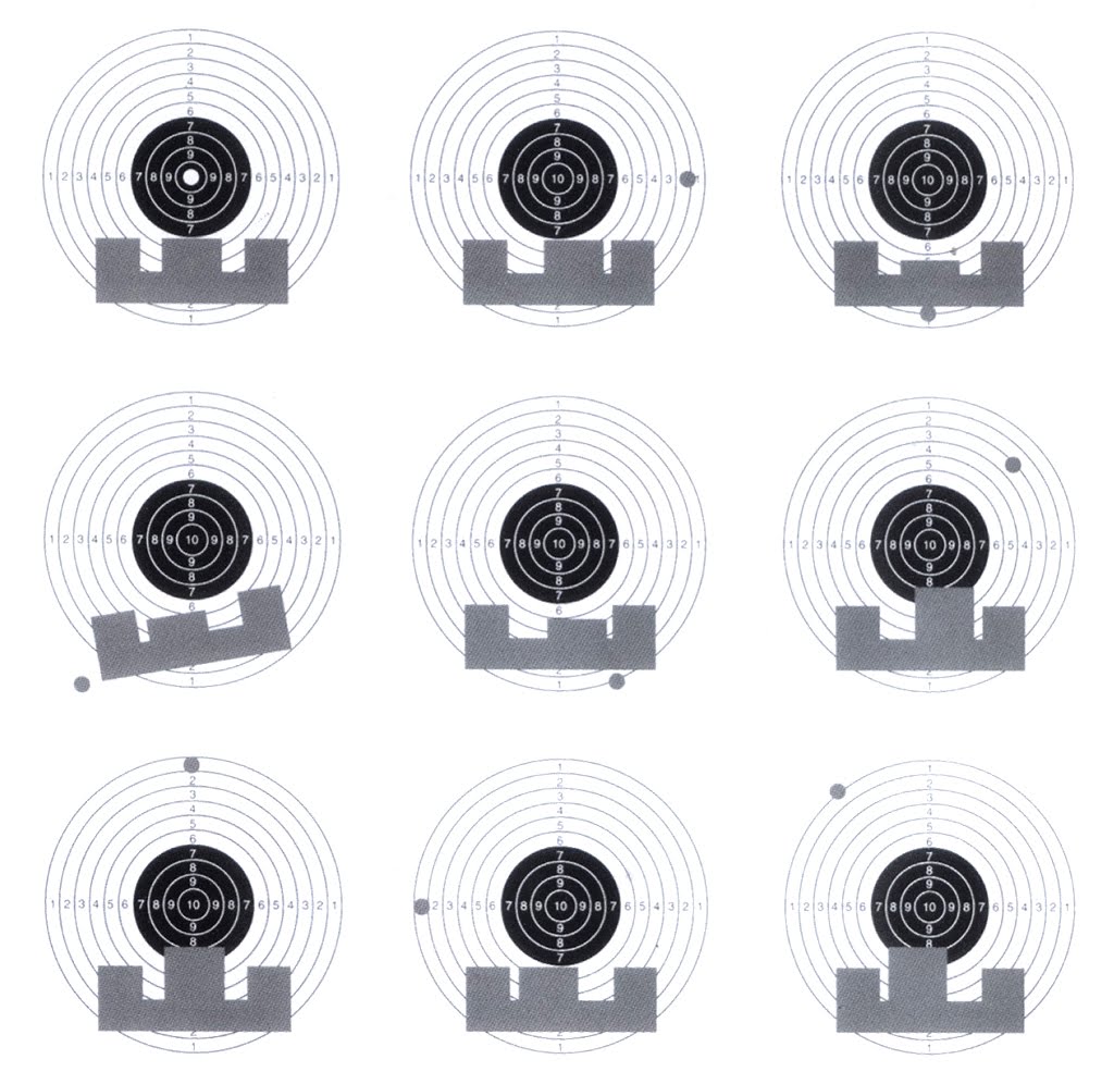 No estoy seguro de si cometo un error, pero lo "normal" seria apuntar al borde negro de abajo de la diana, al menos la primera vez, asi ves a donde va el proyectil, luego vas corrigiendo hasta "pillar el tranquillo" del tiro.