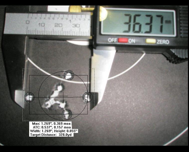 cansino el Vbull mide 1/2 de MOA y estan agrupados en la mitad ademas tienes que descontarle 6mm del calibre.