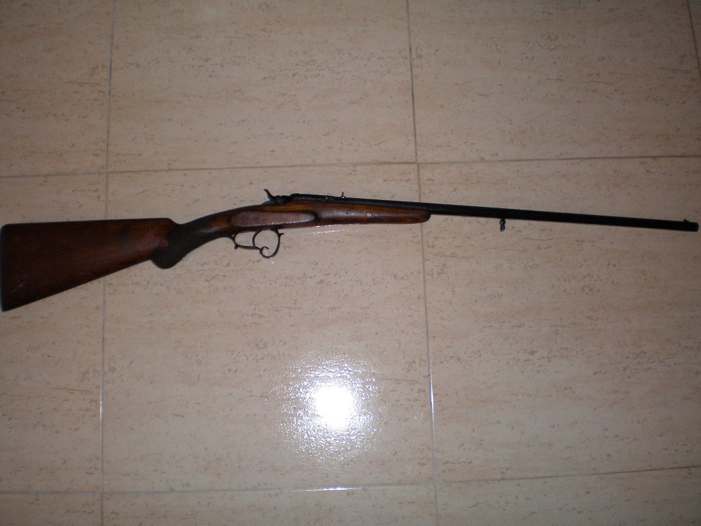 Hola, un conocido me ha pedido a ver si puedo identificarle esta carabina. Parece una monotiro y me ha comentado que es de un calibre pequeño. Ya le he pedido que intente buscar los grabados de marca y calibres... Pero mientras tanto os pongo una foto. Si alguien es capaz de identificarla, podría dar un valor aproximado¿?