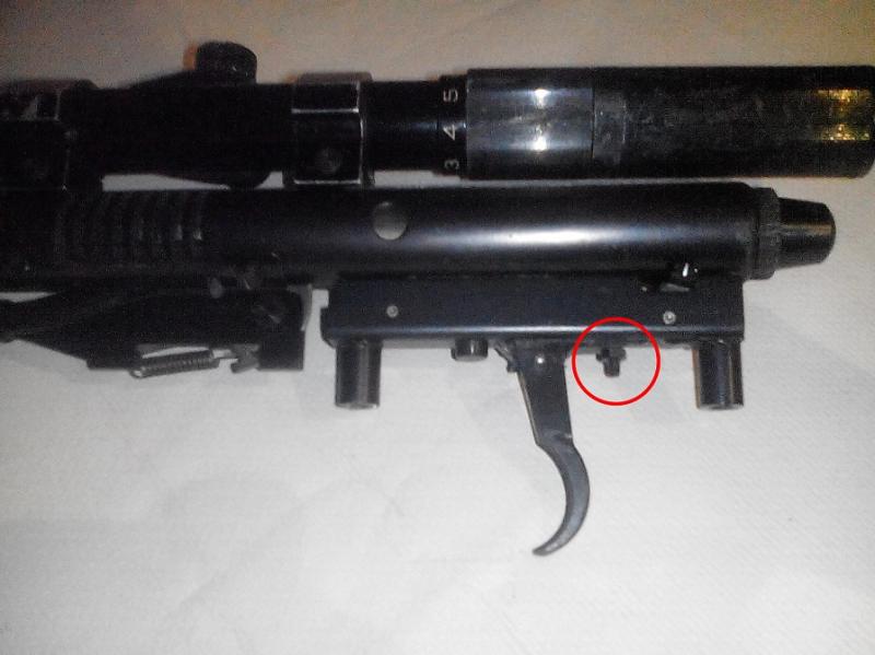 Mi modelo es la que en lugar de cargador lleva el sistema de carga frontal paralelo al cañón pero creo que el resto del mecanismo es igual. En el despiece no te sabría decir bien que tornillo es el que tienes que tocar, no lo veo claro, pero voy a desmontar la mía y le hago una foto, te la cuelgo lo antes posible. Es un tornillo que permite regular el recorrido del disparador, no recuerdo si va en la parte delantera o trasera del disparador pero lo veras enseguida, creo recordar que es una tuerca muy pequeña. Se trata de que la uña del disparador sujete bien el mecanismo del carro del cerrojo. Comprueba que la uña no tenga un desgaste excesivo, sería raro pues el material es bueno, pero nada hay imposible, también lo han podido limar para suavizar el disparador, si a eso añades un muelle muy potente no retiene y por eso se dispara. Es cuestión de jugar con la potencia del muelle y que la uña del disparador enganche bien. Si consigo hacer la foto te la cuelgo. Saludos