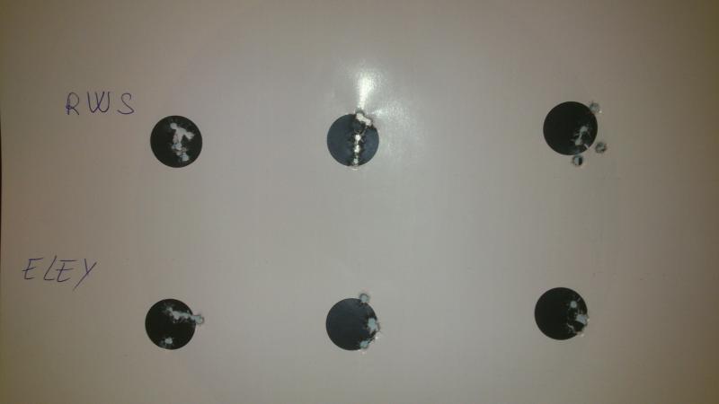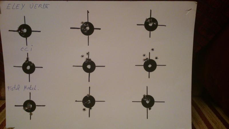 Hay os dejo unas fotos de una prueba realizada con 3 municiones diferentes, antes de regular el disparador pues estaba duro como un garrote.