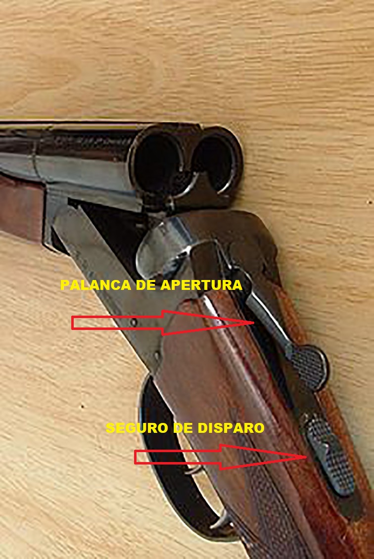 Y casi que es la única palanquita que tiene la escopeta, y bien a la vista, detrás del cañón, no tiene perdida..........