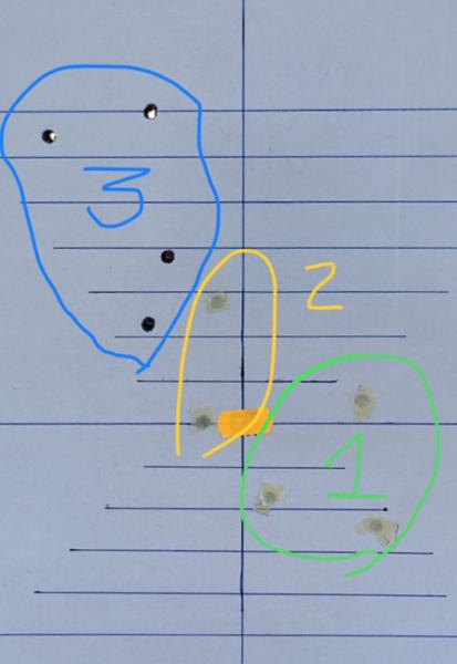 Hola amigos, el caso es que la armeria tampoco se lo creen cuando se lo cuento, y me dicen que lo mande para hacer ellos la prueba. Supuestamente lo probaron con noseque municion que no supieron decirme marca ni resultados de la prueba antes de comprarlo. El caso es que el rifle me llego como nuevo y no se ven sintomas de mal uso, pero la agrupacion es pesima no, lo siguiente. 3 tipos de municion apuntando todo al parche naranja...a 50m
