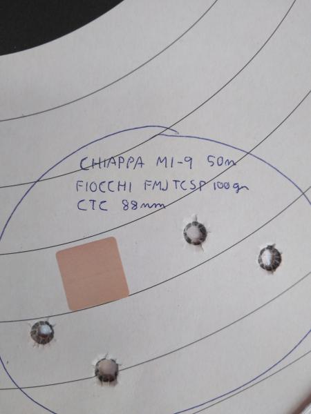 Municion Fiocchi FMJTCSP 100gr, CTC 88mm] (grupos de 4 disparos porque me agotaban las balas)