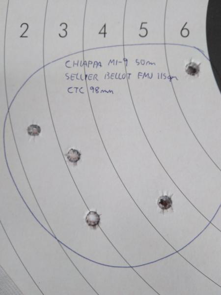 Municion Fiocchi FMJTCSP 100gr, ¿CTC 20mm? (esta agrupacion es soprendentemente buena, pero no veo el 5 disparo por ningun lado y al tener tantos disparos en la diana no me fio de ella)