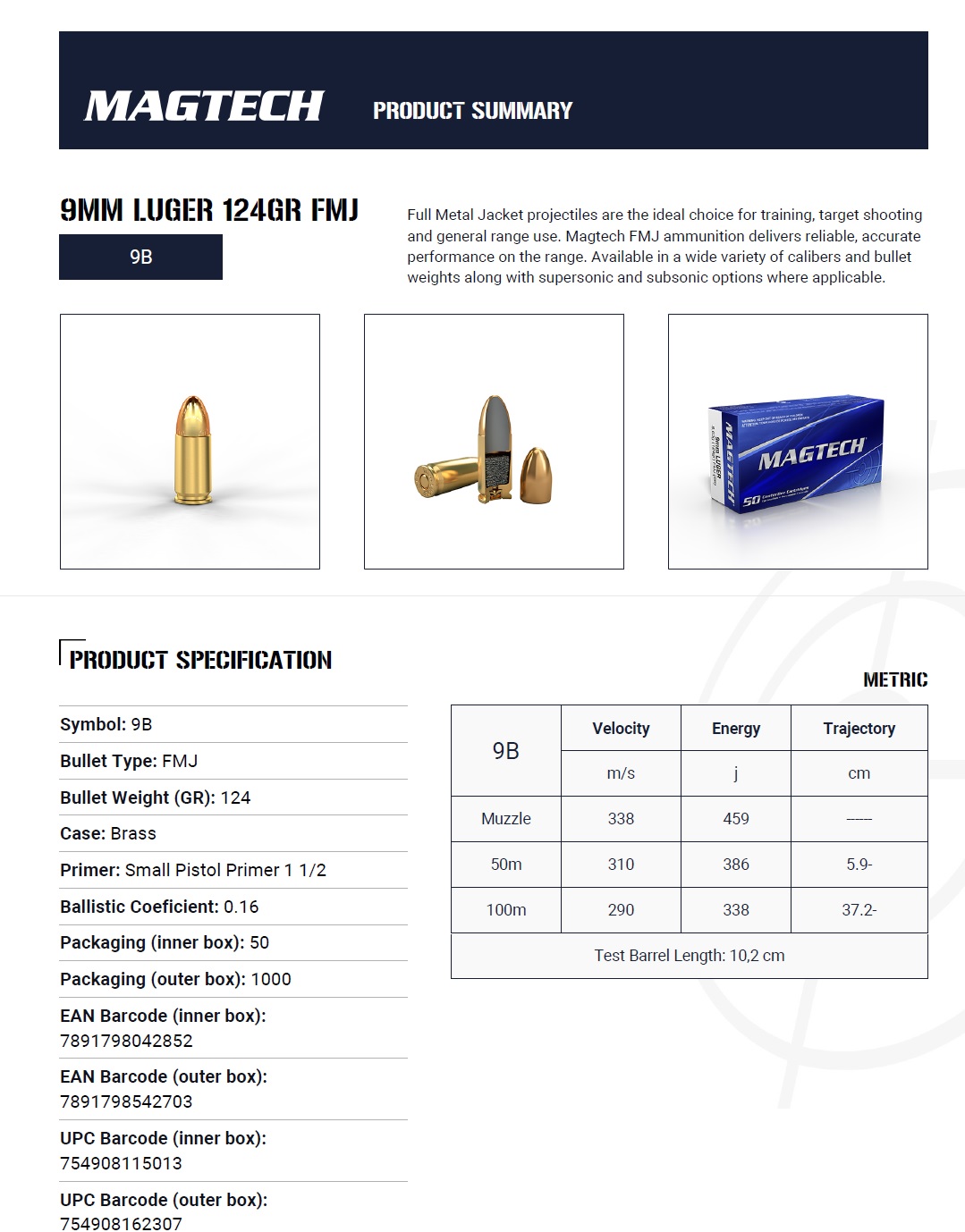 una punta de 9 mm FMJ de 124 grains tiene un B.C. aproximado de 0.149 G1