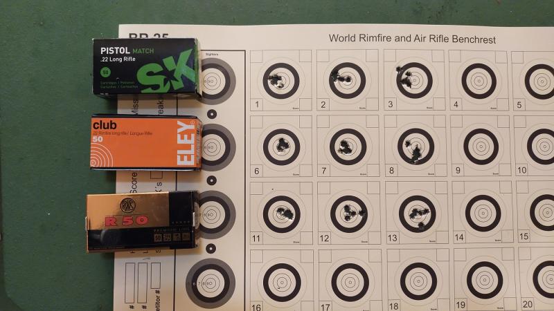 Esta mañana hice unos grupos con SK pistol match, Eley Club y R50 para que te hagas una idea de lo que puede hacer.