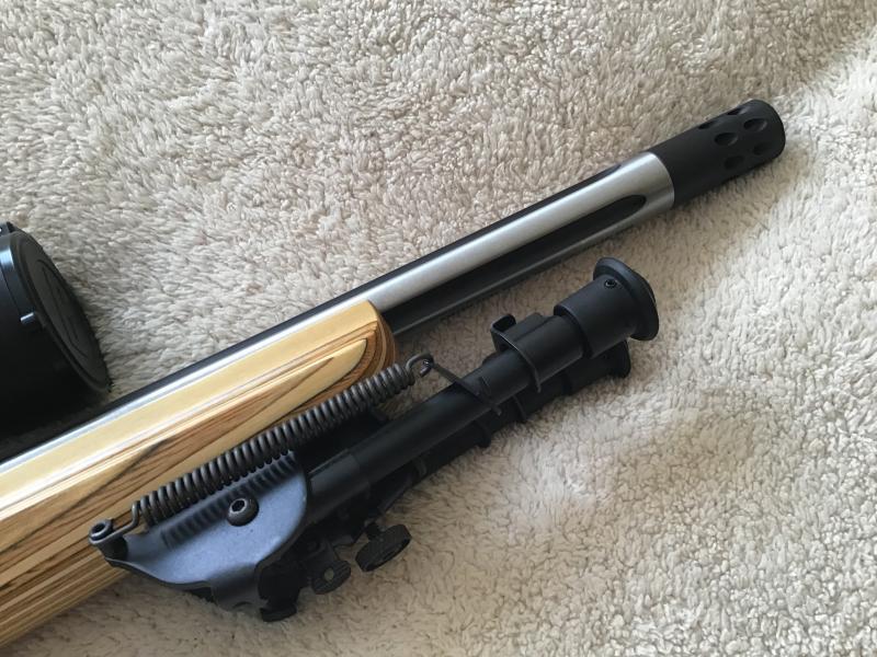 La estética de la carabina para mi gusto es impecable, bonita y bien terminada, pero centrándonos en el aspecto técnico, la carabina es impresionante; el cañón es pesado, flotante, de acero inoxidable martillado en frio, con bandas de enfriamiento tratadas con cerakote. Viene de serie con freno de boca incorporado.