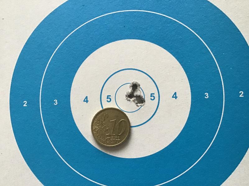 Os dejo fotos de las pruebas que he realizado a 50 metros… con apoyo del bípode Harris, sin saquete trasero. Precisión increíble tratándose de una semiautomática. A ver si tengo oportunidad de probarla a 100 metros.